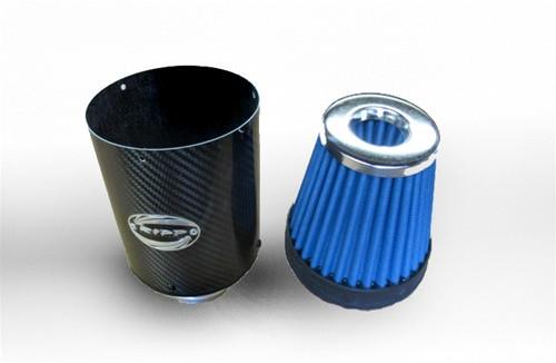 This kit can be configured many ways. Add 6 rear wheel HP and a whopping 15-20ft/lbs of torque in the mid-range as demonstrated in the dyno test below. Expect crisper acceleration and a mean sound while accelerating and quiet normal operation at cruising speeds. The air filter is a quality cotton element that can be washed for many years of operation. The outer housing is long-lasting and durable carbon fiber construction. Replacement filtration elements only come in one piece, carbon fiber housing and filter