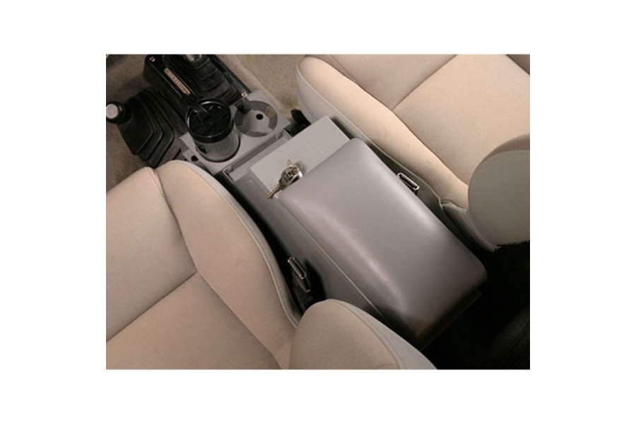 This high security 16 gauge steel console features Tuffy’s patented pushbutton latch system. For safety and convenience while operating the vehicle, the lid also latches closed without having to be locked. It has a spacious compartment for mounting a CD changer, storing tools, electronic equipment, cellular phones, and other valuables. Rubber floor mat is included.