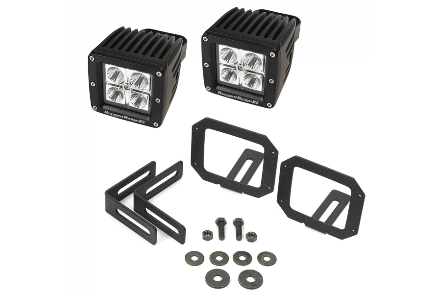 Looking for the ultimate lighting combination for your off-road adventure? With this 4-piece LED light and mount kit from Rugged Ridge, you can update your factory fog lights to brighter and more energy efficient LED lights. This kit includes two square light mount brackets and two 3.0-inch square LED lights for the ultimate in nighttime illumination on the trails.