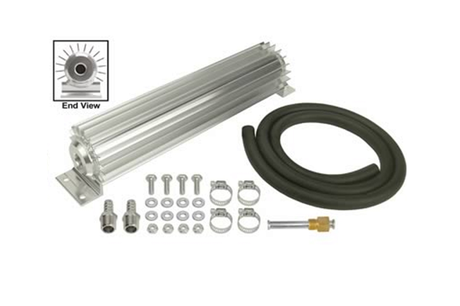 The internal and external cooling fins in these new Derale heat sink transmission coolers provide maximum cooling efficiency without relying on direct airflow. Their compact diameter means that they can be mounted in a variety of locations, such as on the frame rail next to the transmission, directly under the radiator, under the floorboards, etc. The rugged aluminum extrusion features welded ends for long service life, in even the toughest environments. Derale Performance coolers are offered in several lengths with 3/8 in. inlets.