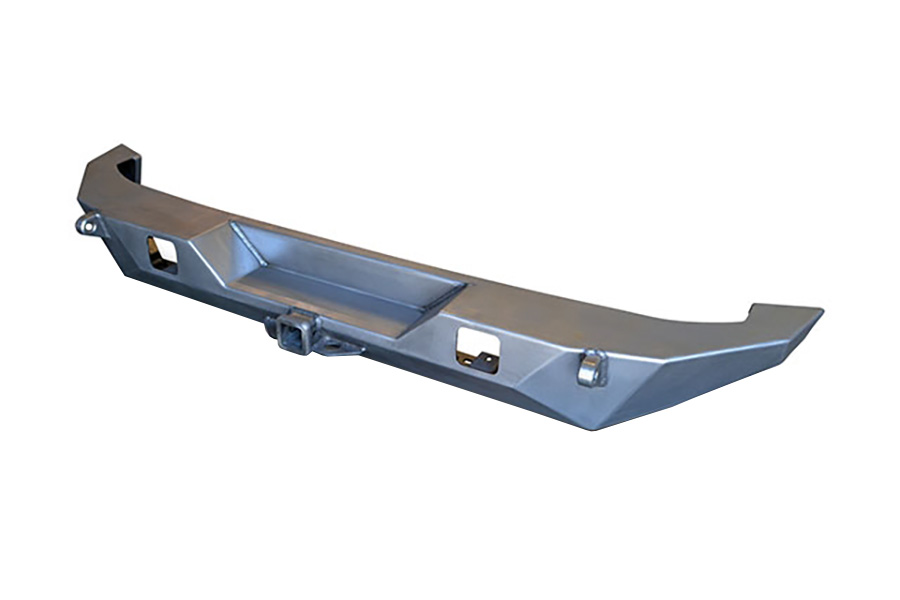 Finally there is a Full Width front bumper that incorporates Poison Spyder's attention to form and function, in an elegant package that integrates perfectly with the stock Jeep or aftermarket stock replacement fender flares. While this bumper was designed for those Jeep enthusiasts who prefer a more "overland" style and function to their Jeep build, or want to keep their factory flares, we couldn't simply make a full-width monstrosity like so many unsightly bumpers already on the market. Even though it's full width, and less likely to be used on the hard core rock trails, we still felt compelled to design it with maximum approach angle, ground clearance and tire clearance possible while still extending out to the full width of the stock flares to protect the corners of the Jeep. The outriggers that extend to the edge of the flare are kept as tight to the original Brawler's high clearance lines as possible, tapering outward toward the ends. This allows the best departure angles possible in a full width rear bumper, minimizing the chances of hanging up as the rear tire comes off a rock or ledge. The outriggers are designed to integrate visually with the stock fender flares, in a clean, almost "factory" look.