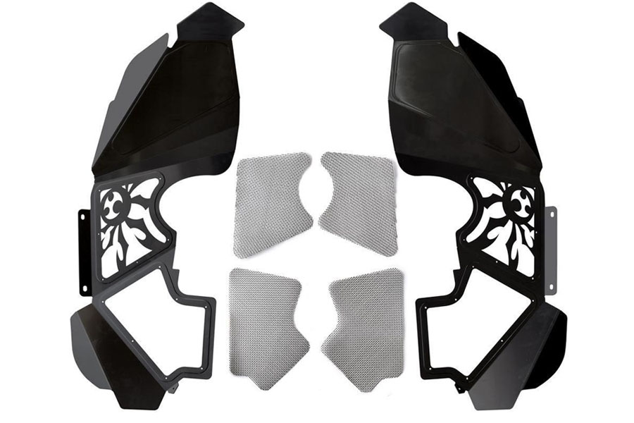 Durable Construction. The main panels are made of 16-gauge 5052 aluminum, while the vent panels are heavy-duty stainless-steel wire mesh. The CNC bead-rolled features look great and give the product a distinctive motorsports flare, but the beads actually help stiffen the product for further strength. Covered by Poison Spyder’s Limited Lifetime Warranty, these inner fenders are shipped in BLACK SpyderShell armor coat which carries a 1-year finish warranty.