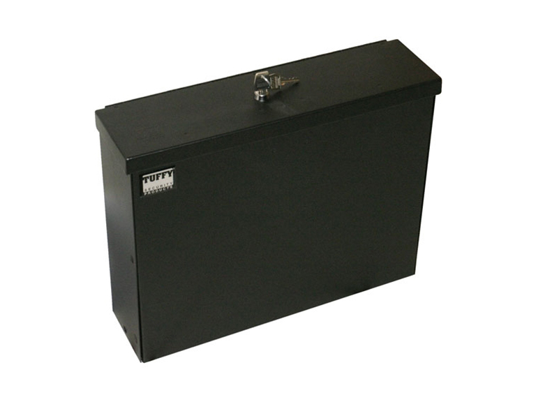 The Tuffy Laptop lockbox is specifically designed to provide a secure and protected place to lock up portable computers. The 1 inch and 2 inch thick foam lining protects the contents from jarring and shifting during transport. Tuffy’s exclusive Pry-Guard locking system provides the high security required to protect expensive computer equipment. The unique design incorporates an exclusive hinging system and welded steel construction. Grade 8 mounting hardware is included with mounting holes provided for bottom or back flush surface mounting so the lockbox can be mounted behind the rear seat in a pickup truck or virtually any other place it can fit. For maximum flexibility and ease of installation the lockbox can be secured to the vehicle by utilizing the unique padlock mounting point to secure it to the vehicle using a standard cable. (Padlock & cable not included) The lid is still locked with the cam lock on top not the padlock.