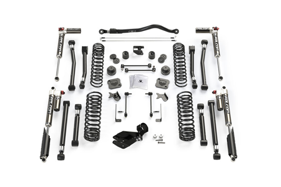 A performance-focused suspension system for JT Gladiators. Delivers maximum control, durability, and aggressive trail capability, featuring Falcon SP2 3.3 Fast Adjust piggyback shocks and full geometry correction.