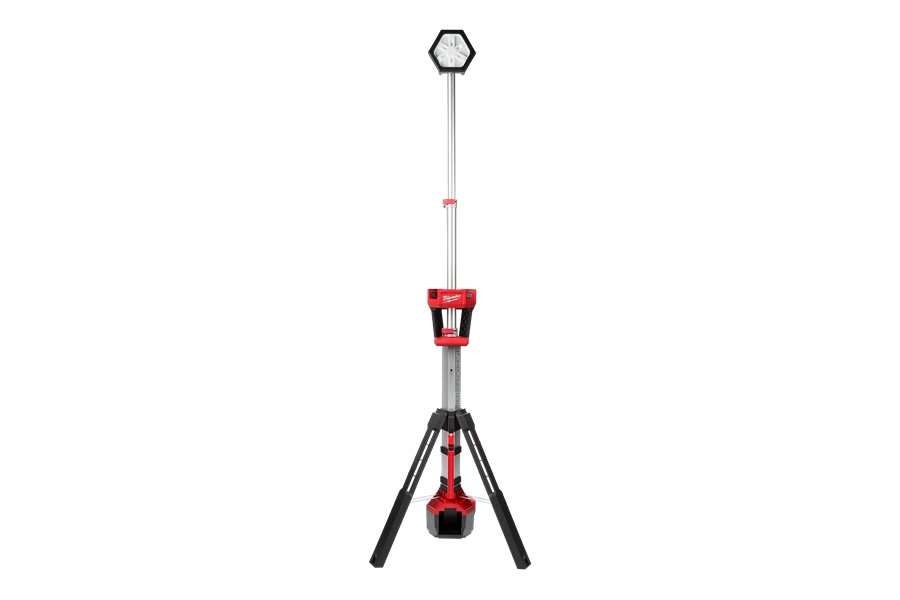 MILWAUKEE TRUEVIEW High Definition Output provides neutral white color and a high color rendering index with a reflector that produces an even beam pattern. The portable light tower has reinforced legs that are impact-resistant, and a low center of gravity provides a stable base. The LED light head is protected by an impact-resistant lens and bezel, nested in a protective shroud for secure transport and storage. The LEDs never need to be replaced and are backed by a limited lifetime warranty. The combination of these technologies offers professionals the highest quality LED lighting solutions, on or off the job site. MILWAUKEE ROCKET Tower Lights are designed to deploy in seconds and built to adapt to any job site environment. The LED light towers supply both task and area lighting as well as provide light overhead to reduce shadows in the workspace.