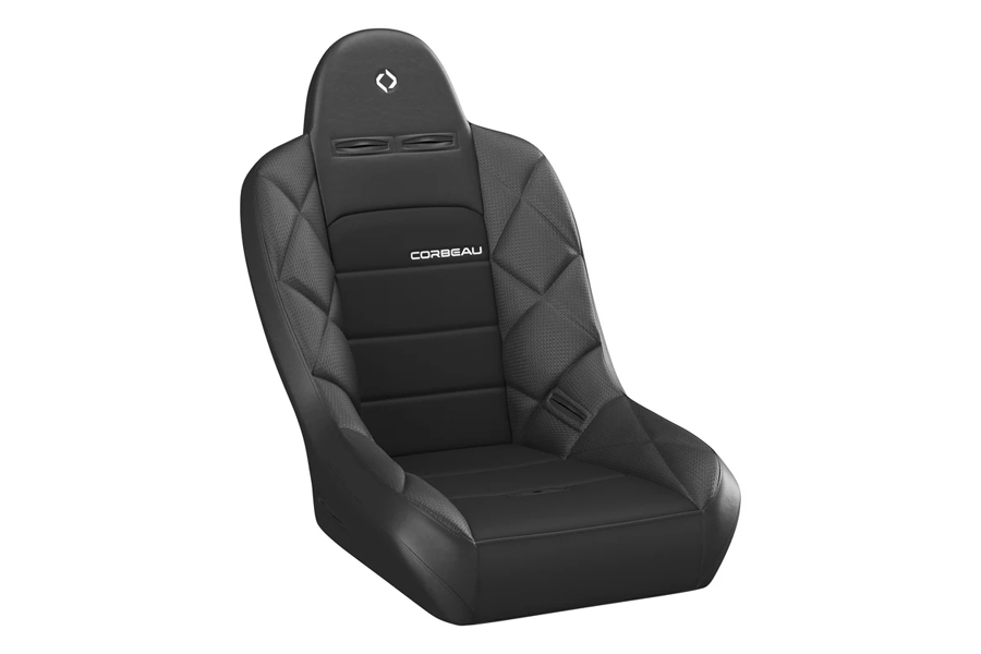 The Baja JP suspension seat is basically the same seat as our well-known Baja SS seat. The main difference between the two seats, aside from the stitch pattern and dual harness slots, is the Baja JP is flat on the bottom as opposed to vertical tabs. This allows it to bolt on Corbeau brackets or a flat mounting surface without having to order a Baja Adapter. In addition, the Baja JP is a direct bolt in to most Jeep CJ5’s, and all CJ7’s and YJ’s. Please note, the stock CJ brackets are at an angle, which means when the JP is bolted to the stock brackets, it puts the seat at an extreme angle. We recommend our custom CJ brackets unless you are okay with the seat back being at an extreme recline. The Baja JP will fit in any other vehicle with Corbeau custom brackets. Like all Corbeau suspension seats, the Baja JP is equipped with the state of the art Corbeau suspension system. This system has proven to provide superior cushioning and significant energy return upon impact. The suspension system creates somewhat of a trampoline affect, which absorbs the impact your back would otherwise endure. The Baja JP is available in all black vinyl and vinyl/cloth materials. The Baja JP will fit up to a 38" inch waist and the Wide will fit up to a 42" waist. You will notice the overall width of the Baja JP Wide is actually narrower then the regular Baja JP, this is not a typo. When we say wide we mean it will fit a wider driver. The Baja JP Wide has less aggressive bolsters making it a better fit for larger drivers but is indeed an overall narrower seat. The art numbers for the Baja JP seat are as follows: 26401: Black Vinyl, 26401W: Black Vinyl Wide, 26402B: Black Vinyl/Cloth, 26402BW: Black Vinyl/Cloth Wide.