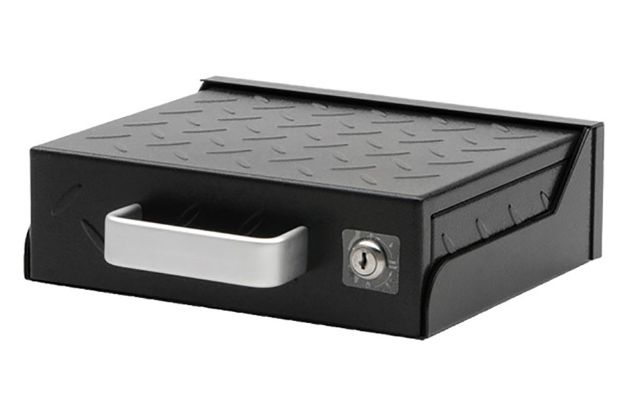 Universal Portable Secure Lock Box with Mounting Sleeve, 8.25" x 9.25" x 3". This portable lock box is a great way to secure valuables inside your rig. The egg shell foam interior will cradle fragile items and prevent breakage during off-road adventures, while the locking 14-gauge heavy-duty steel box prevents theft. The mounting sleeve can be installed anywhere in the vehicle, and the dual locking system allows the box to be locked to the sleeve but also be removed from the sleeve while locked.