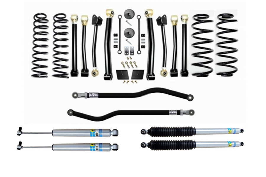 The EVO MFG 2.5" JL Enforcer Kits are easy to install using normal tools. No drilling or cutting (optional rear shock extensions require one minor drill). They require no driveshaft or exhaust modifications (your shock choice may require this, contact manufacturer to be sure). Simple Bolt on installation.