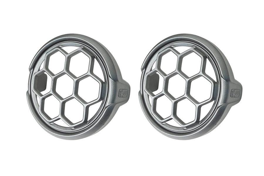AEV’s 7000 Series Light Grille Kit is designed specifically for the 7000 Series LED Off-Road Light. These heavy duty, cast aluminum Light Grilles replace the stock trim bezel surrounding the lens to offer significant protection from debris both on the trail and on the freeway. Those of you living in a state that requires solid light covers on the highway, your solid AEV Light Covers will fit OVER these grilles – there no need to take them on and off. Sold as a pair.