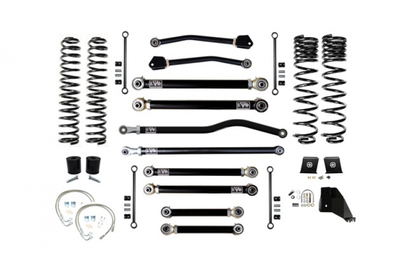 The EVO MFG 6.5” Jeep Gladiator JT Enforcer Suspension Systems lift your 2020+ Jeep Gladiator JT 6.5”s. The JT Enforcer kits are specifically designed and engineered to lift your JL and maintain a performance spring rate, smooth ride quality all while retaining tow capacities. These kits allow for use of your choice of any aftermarket 2.5-5” lift shock or use of our EVO SPEC tuned 2.5” Remote Reservoir King Shocks. These kits come with a set of 6.5” lift springs specific to each corner which will keep the Jeep Gladiator JT level side to side. The EVO MFG 6.5" JT Enforcer Kits are easy to install using normal tools. They require no exhaust modifications. Simple Bolt on installation. EVO MFG JT Enforcer kits are available in multiple configurations to suit your needs and budget and are upgradable down the road.