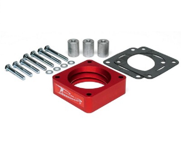 This spacer has been fabricated from billet 6061-T6 aluminum and comes in the anodized red finish. Gaskets, as well as hardware, are included and installation will take around 1 hour with basic hand tools.