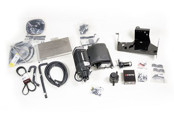 The AEV Supercharger Kit contains Magnuson's patented cast aluminum high-velocity intake manifold, an Eaton MP 1320 TVS supercharger as well as all of the fittings, lines, belts and hardware needed. To maximize the efficiency of the supercharger, this system includes an air-water intercooler, coolant circulation pump, and coolant reservoir.