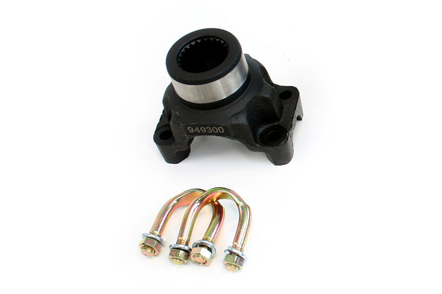 The TeraFlex JK U-bolt conversion kit replaces the OEM rear axle pinion flange with a standard 1310 CV cardan joint style yoke and U-bolt style connector. The conversion makes u-joint changes easier after breakages. These yokes must be used with a CV style (double cardan) driveshaft.