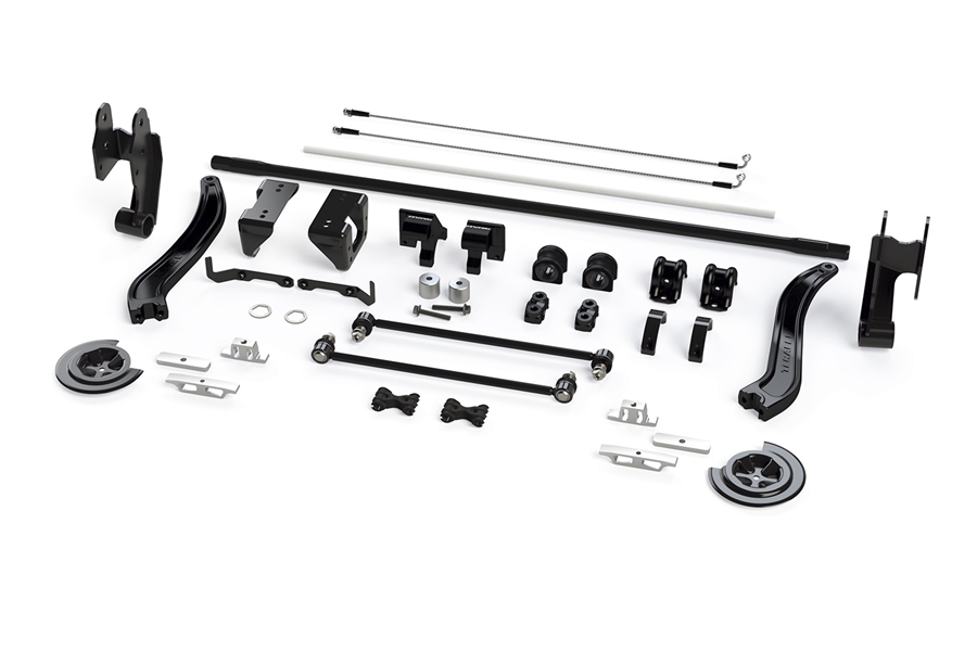 This complete system combines our standard Extended-Travel Shock Accessory Kit with our Rear Upper Control Arm Extended-Travel Axle Bracket Kit, Rear Forged ST Sway Bar Kit, 1.5” Rear Driveline Center Support Mount Lowering Spacer Kit, Rear Upper & Rear Lower Coil Spring Retainer Kit, and Rear Brake Line Anchor Kit.