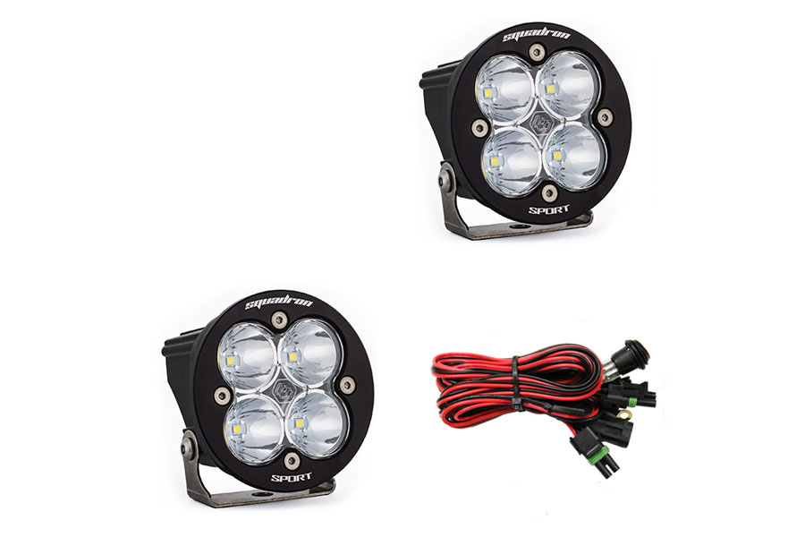 The Baja Designs Squadron-R Sport LED Light pod pair features a larger 4-inch front round bezel designed for those wanting a more traditional styling and for aftermarket bumpers that feature a 4-inch round hole. Don’t let the compact size of these light pods fool you as they will fit almost anywhere you need auxiliary off-road lighting on your truck, Jeep, SUV, UTV and any other vehicle that needs lights. While compact in size the Squadron-R Sport is equipped with a sleek black gloss aluminum housing that outshines the competition through both appearance and performance using next generation LEDs pushing out 3,162 lumens at 30 watts. USPTO Reg No. 5,766,659