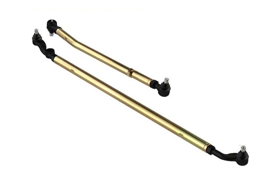 The high clearance bends of the strong 1.375 OD Drag Link tubing are engineered for up and down travel providing the needed space for aftermarket axles and differential covers and is coated with gold zinc chromate for a long lasting finish. Factory like fitment with OE taper pin and lock nut are found with the Dual 1-ton forged and heat treated Rod-Ends, they have extra strength right where it is needed and are designed to control directional misalignment to prevent Drag Link flop. Sealed with durable rubber grease boots; the ends are simple to service via provided zerk fittings.