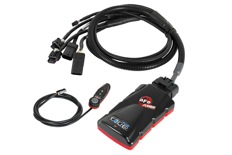 aFe POWER SCORCHER BLUE Power modules are the next generation of plug-and-play electronic module technology. It is the fastest way to safely gain significant horsepower, torque and improve drivability without modifying or leaving any trace on the Engine Control Unit (ECU). The SCORCHER BLUE features an LED control switch for in-cabin, on-the-fly power adjustments with different preset modes. With Bluetooth connectivity you can tap into your iOS or Android device to make power adjustments, custom tune different power modes, view gauges for engine parameters, upgrade to the latest version, measure acceleration times and more. The app is downloadable for free on the App Store or Google Play store.