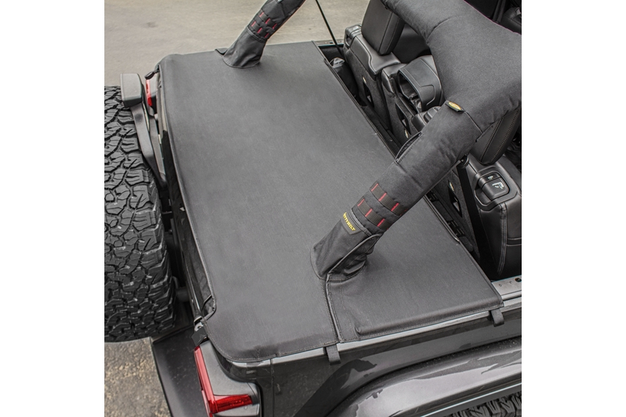 Maximize the versatility and comfort of your Jeep Wrangler JL with a Smittybilt Tonneau Cover. Smittybilt Tonneau Covers are crafted from the most durable components and designed for a hassle-free installation. Custom fit for every application providing a perfect fit that will not flap in the wind. Keep your valuables safe from the elements and away from prying eyes. Seals around roll bar with hook and loop fastener.