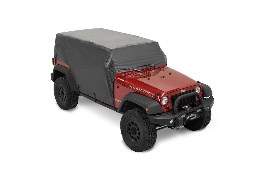 The Bestop All Weather Jeep Trail Cover protects the cab, windshield and interior of any Jeep from the harsh effects of sun, wind and rain. The Bestop Trail Cover is the only cab cover for Jeep that also includes door opening protection flaps to protect the interior when trail doors, tube door or no doors are in use. Comes with stuff sack for storage and fits over other Bestop exterior accessories. Adjustable straps are designed to provide a snug, tight fit.