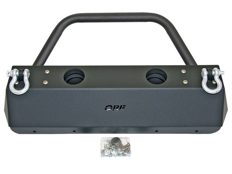 OR-Fab Front Stubby Bumper w/Hoop and OEM Light Mount Wrinkle Black