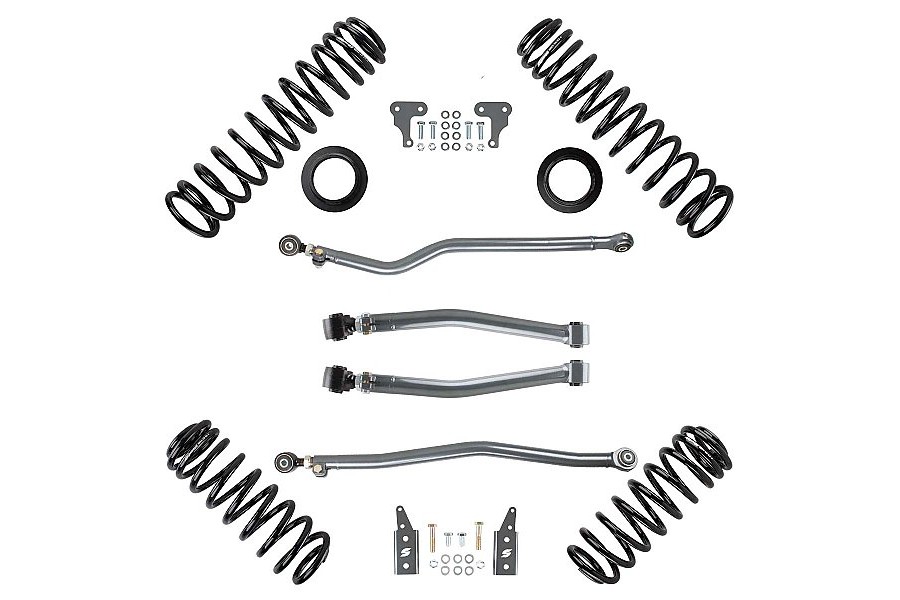 The Jeep JT Stage 1 Suspension System is a coil spring 1 & 2-inch lift designed around 37-inch tires for Rubicon models and 35-inch tires for non-Rubicon models (See fender and bump stop spacing recommendations below). This system is designed to be the most capable performance coil spring lift in its price category with room to upgrade as needed.