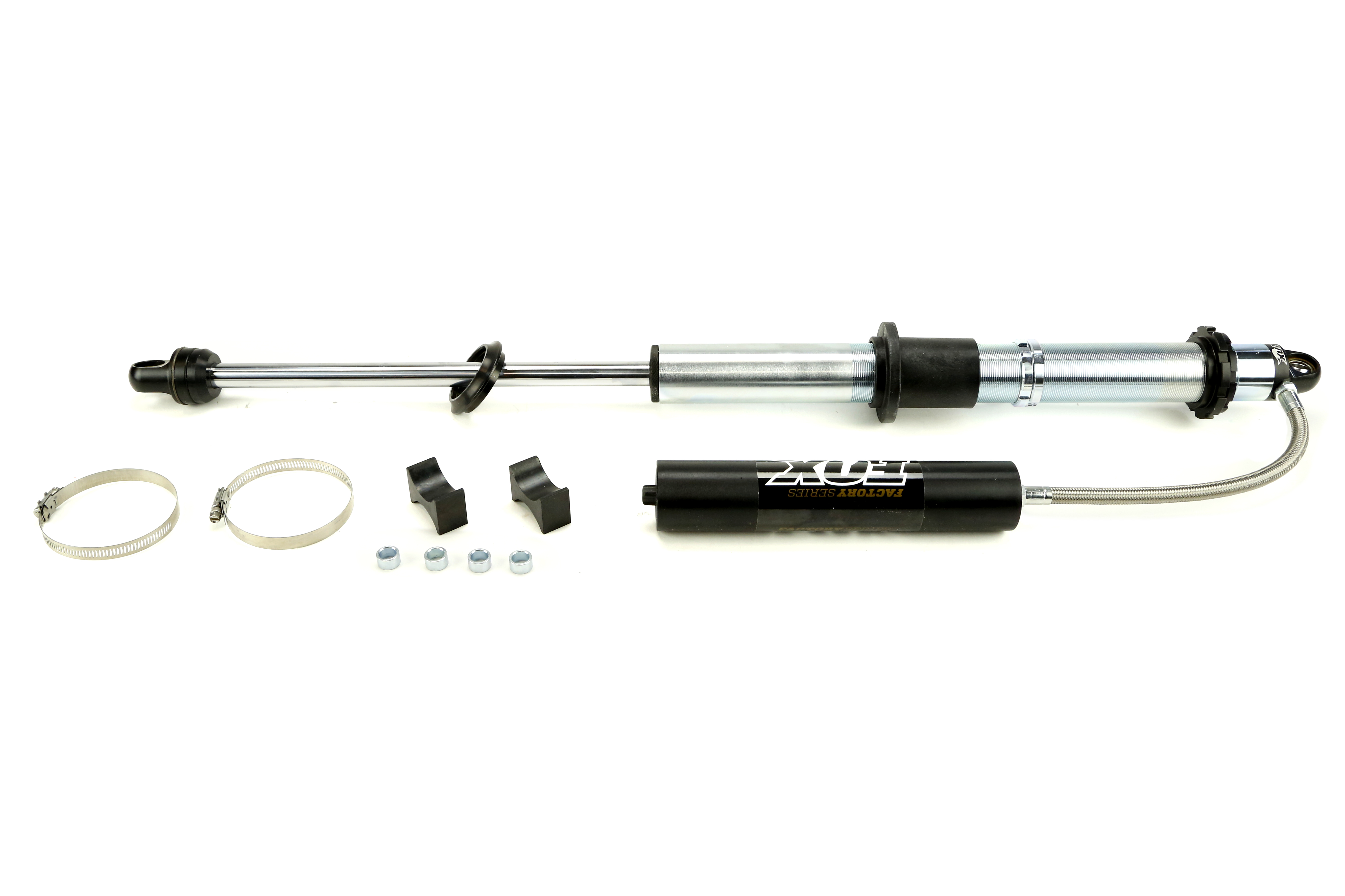 They feature an external reservoir to separate the shock oil, from high-pressure nitrogen. This is the same technology found on race-proven vehicles that employ Fox Performance Shocks. The bodies of the shocks are 2” in diameter, and are crafted out of aluminum. 7/8” chrome plated alloy shock shafts operate the internal floating pistons. These are a direct bolt-on high performance shock for those who demand the most out of their suspension. These shocks can be tuned, and are 100% serviceable which allows them to be re-valved, and re-built back to specifications.