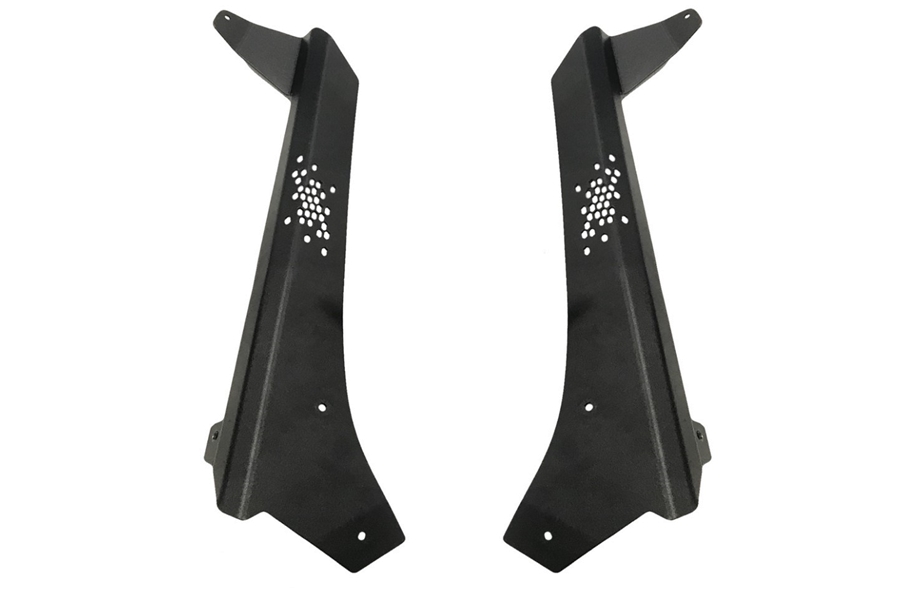 Rock Slide Engineering’s JL and JT Light Bracket Kit includes Pod Brackets to firmly anchor your pod lights, and the Upper Bar Brackets to support and hold your LED Light Bar. Both are made from 11-gauge steel. Making this kit a great option to support your lights. We use a state-of-the-art automated powder coat system to for a textured black topcoat. The mount has some play and will fit a variety of light bars. The distance between each upper bracket is bracket is 51 and 5/8 inches. Measure your light bar to make sure this product will work for you! Easy, no drill installation!