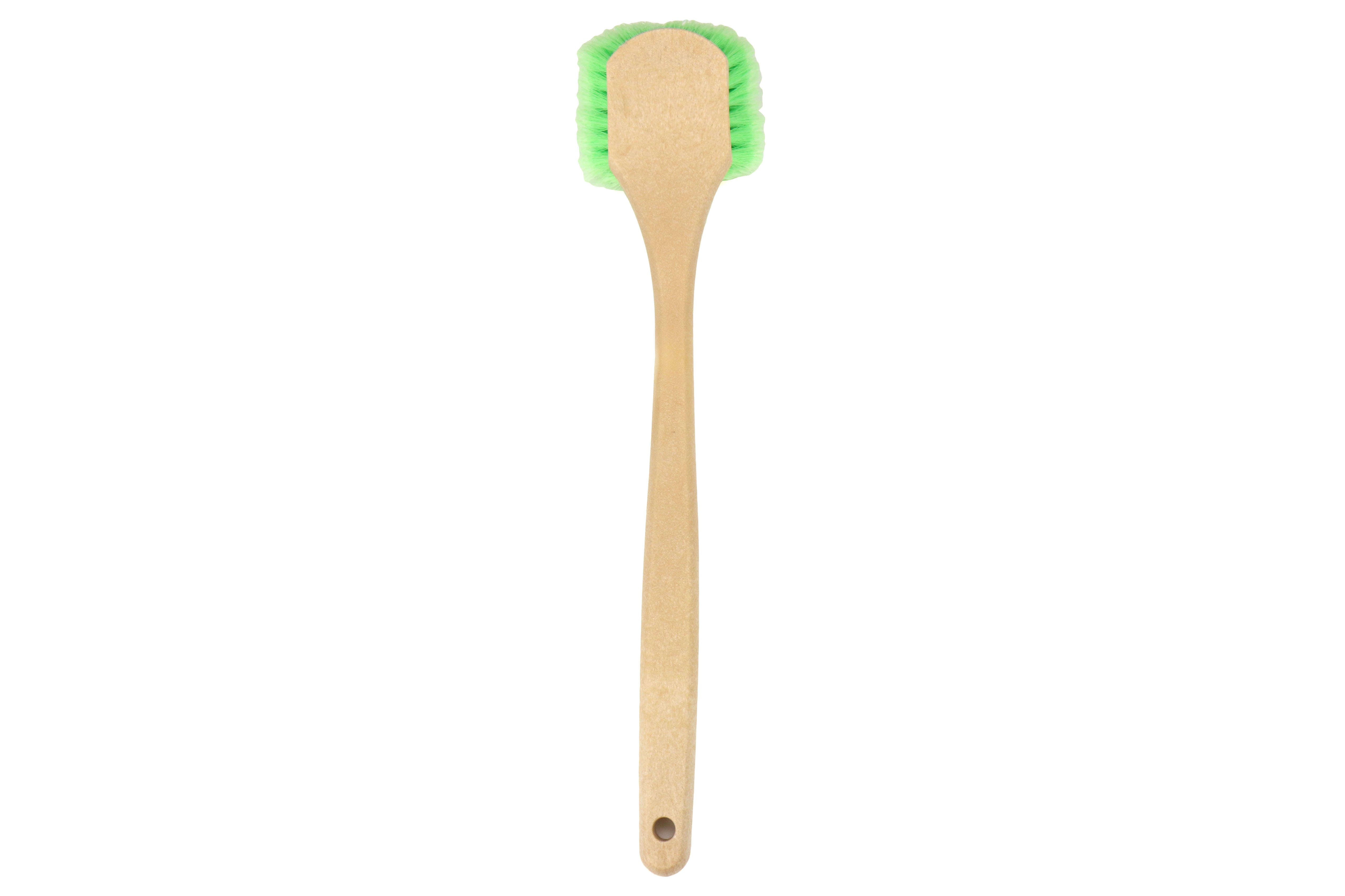 This brush features an extra-long handle with an angled head that slips in between the tire and wheel well for fast and easy cleaning of rubber, plastic, and carpeted fender liners. The durable plastic handle is scratch and abrasion resistant and won’t damage wheel finishes on accidental contact. Soft flagged-tipped bristles gently scrub and lift dirt and grime for a scratch-free shine.