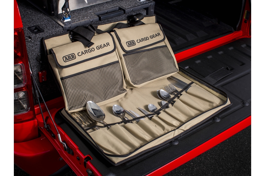 The ARB Utility Case has a total of eighteen storage pockets that are perfect for storing silverware, granola bars, and other trail necessities with the added feature of a large removable pocket. The internal permanent pocket provides storage for plates. The inner compartment is built with heavy-duty mesh sections for storage of quick-to-reach items such as napkins, spices, or sauces. Housing all your kitchen utensils is ten various-sized smaller pockets with secure straps to keep your utensils from moving around. On the sides are slip pockets for small chopping boards or other flat objects. Finally, a paper towel roll holder enables a quick cleanup and is secured with easy-slide steel buckles. Not only is this utility case great for your kitchen setup, it can also function as a trail toolkit. The utility case can be zipped up using the heavy-duty zipper. providing easy access to your kit anytime or rolled up (ideal for tools).