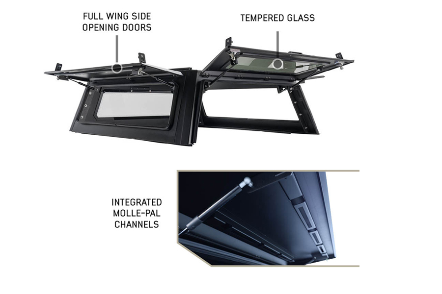 Overland Vehicle Systems Expedition Truck Cap w/Full Wing Doors, Front/Rear Windows, 3rd Brake Light