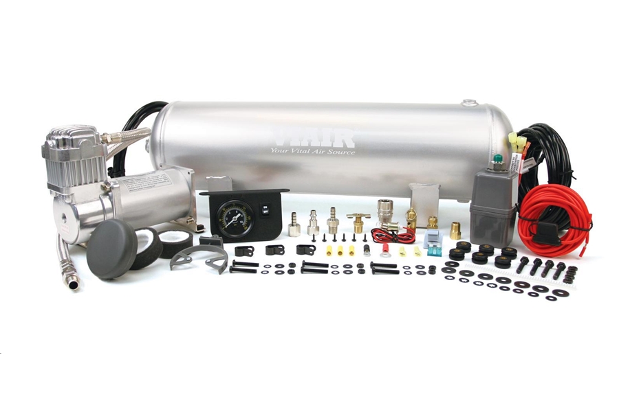 VIAIR’s Medium Duty Onboard Air System is a pre-packaged compressed air solution that provides a 33% duty cycle 325C compressor, 2.5 gallon air tank, and all components needed to install basic vehicle-based pneumatics.