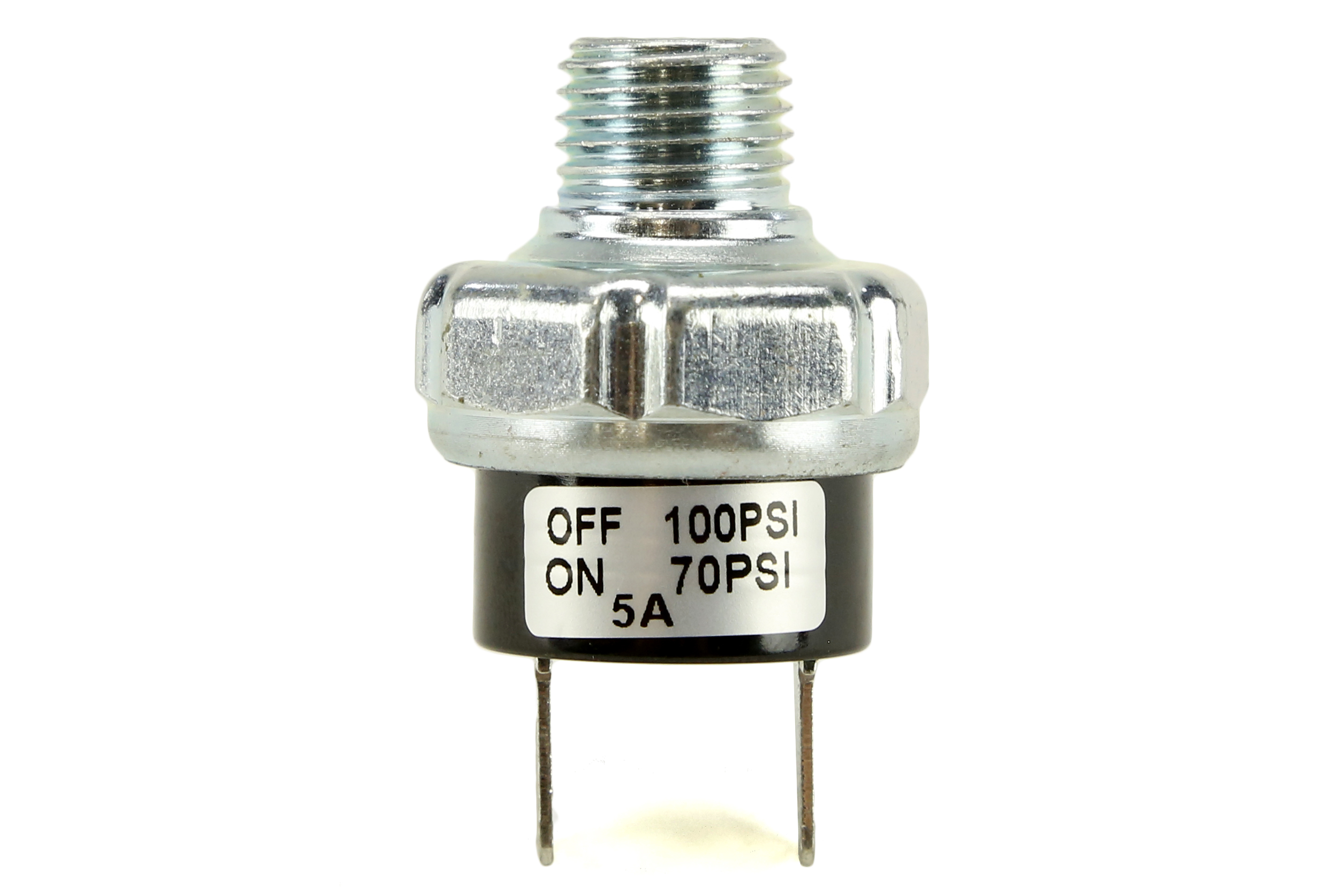 This particular pressure switch operates at 70 PSI, and closes at 100 PSI. This is the ideal switch for the ARBCKMA12, and ARBCKSA12 air compressors.