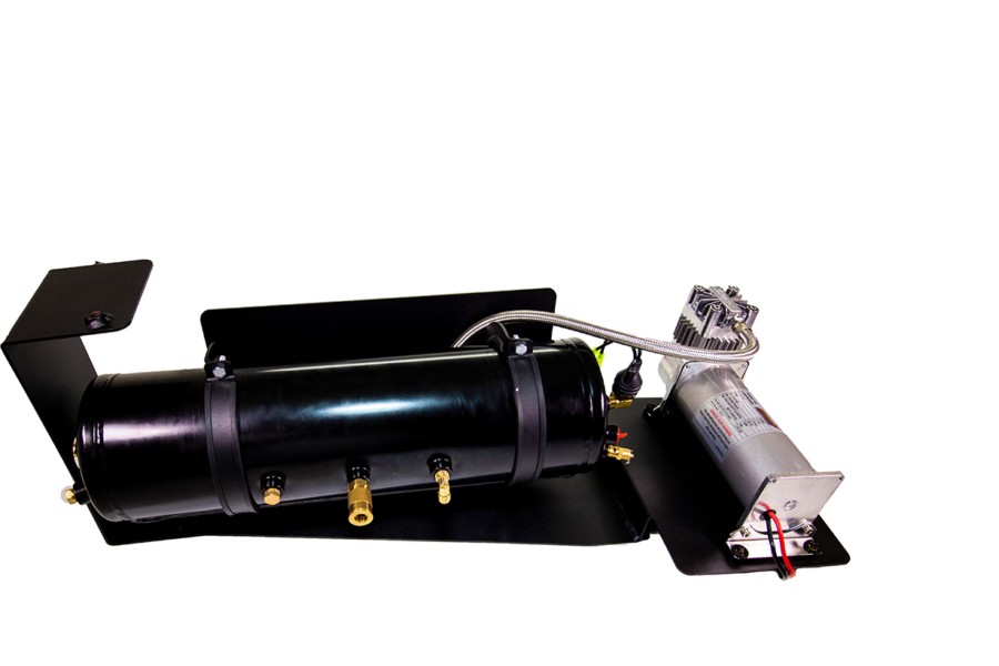 The JT-OBA Onboard Air system was designed to perform under the most extreme conditions. Each system is 100% Bolt-On and features the heavy-duty Kleinn model 6450RC WATERPROOF air compressor with a 2.8-gallon air tank mounted on a custom designed,, mounting bracket. NO Cutting, Drilling or Modifications are necessary. These Direct Fit systems include all the necessary air line, hardware, fittings and wiring kit with 30-amp relay.
