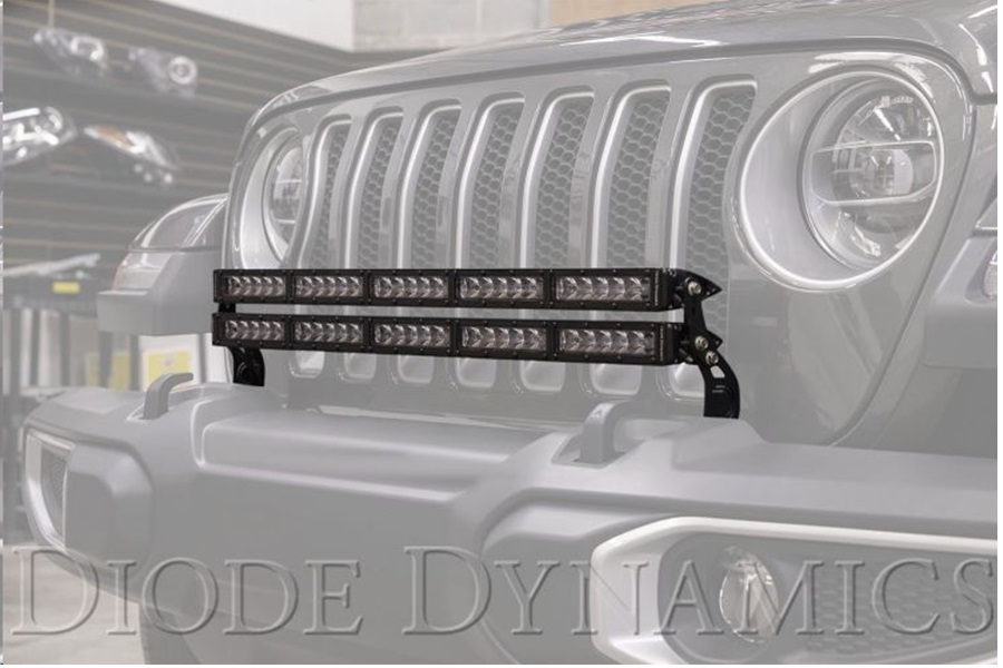 Perfect Fitment. The Bumper LED Light Bar Kit from Diode Dynamics allows you to mount a dual Stage Series 30" LED Light Bars on the factory front bumper. These application-specific brackets were CAD-designed to install using factory mounting points. No cutting or drilling required! A low-profile design eliminates whistling or major wind noise you may have experienced with other light bar brackets as well.