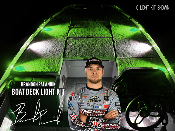 The elite Brandon Palaniuk Signature Series Boat Deck Light Kit from Rigid Industries is a must for every angler. Whether you're trimming a jig the morning of a tournament or re-spooling the night before a weekend of fishing, this kit will provide you with the light needed to get the job done. The Brandon Palaniuk Boat Deck Light Kit is offered in a variety of colors and includes all wiring, mounting hardware, and instructions for a clean and easy install.