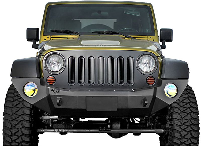 The Rock Slide Engineering Front bumper is built with 3/16" aluminum and 1/4" mounting plates. Features include 2 recovery shackle points, integrated light pockets, which fit PIAA 520 Series Lights perfectly, and a lowered winch mount plate to maximize airflow through the radiator. This innovative design provides a unique and distinctive look that compliments the style lines of your Wrangler with serious off road durability.