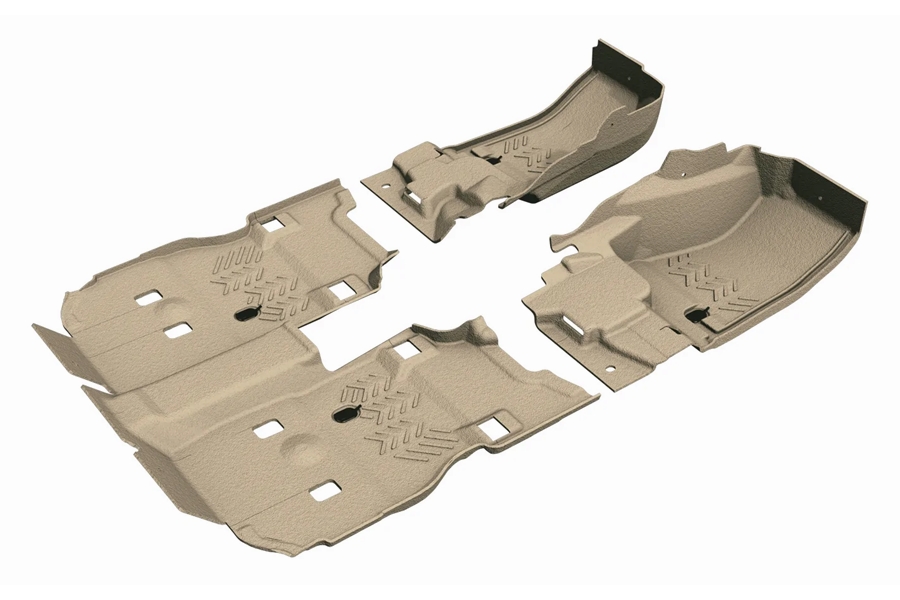 Complete replacement front and rear flooring system for 2018-Current Jeep Wrangler JLU (4Dr) models. Easy to install, easy to clean, reduces cabin heat and noise, and tougher than any floor on the trail for scratch and mar resistance.