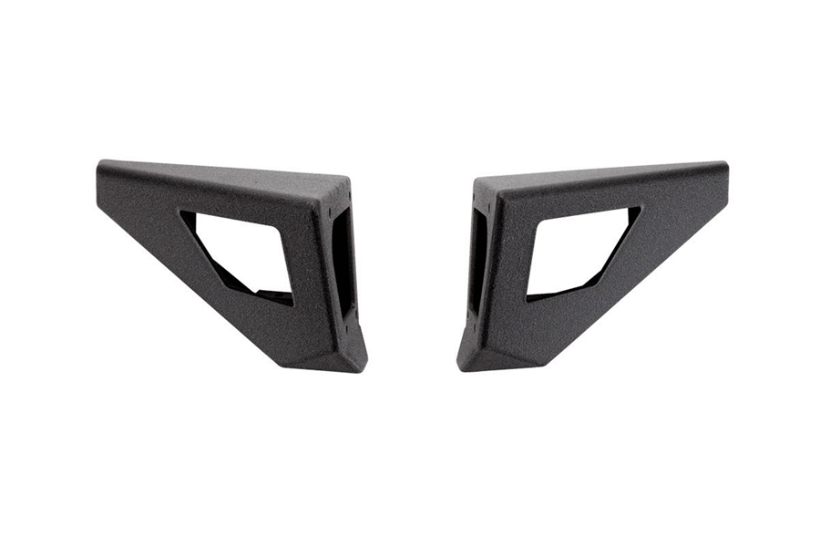 Bumper Wings by Body Armor 4x4®. 2 Pieces. With Dual LED Cube Light Pockets. These are accessory wings that mount to the PRO-Series JK-19536 stubby front bumper. The light pockets have openings for cube style LED light Kit. These wings are made from 3/16" thick steel plate construction. The back side of the wing is reinforced with extra plating to increase strength. There is a light tab for cube style LED's. Easy bolt on installation to the Stubby bumper. Adding the wings will extend the width of the bumper to approximately 61". Powder coat finish with Body Armor exclusive dual zinc based primer powder coat for maximum corrosion resistance. Made in the USA