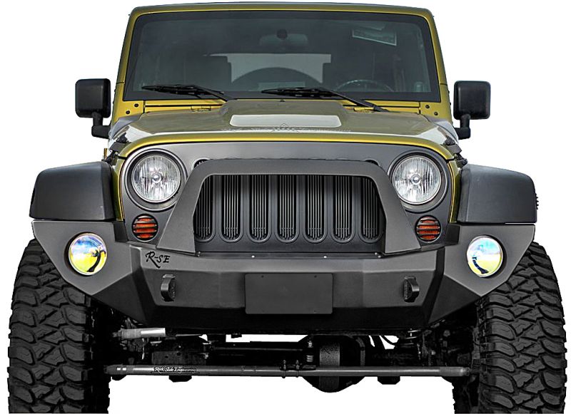 The Rock Slide Engineering Front bumper is built with 3/16" alloy steel and 1/4" mounting plates. Features include 2 recovery shackle points and a lowered winch mount plate to maximize airflow through the radiator. Other great features include a unique fabricated bull bar with optional winch Work Light Kit. This innovative design provides a unique and distinctive look that compliments the style lines of your Wrangler with serious off road durability.