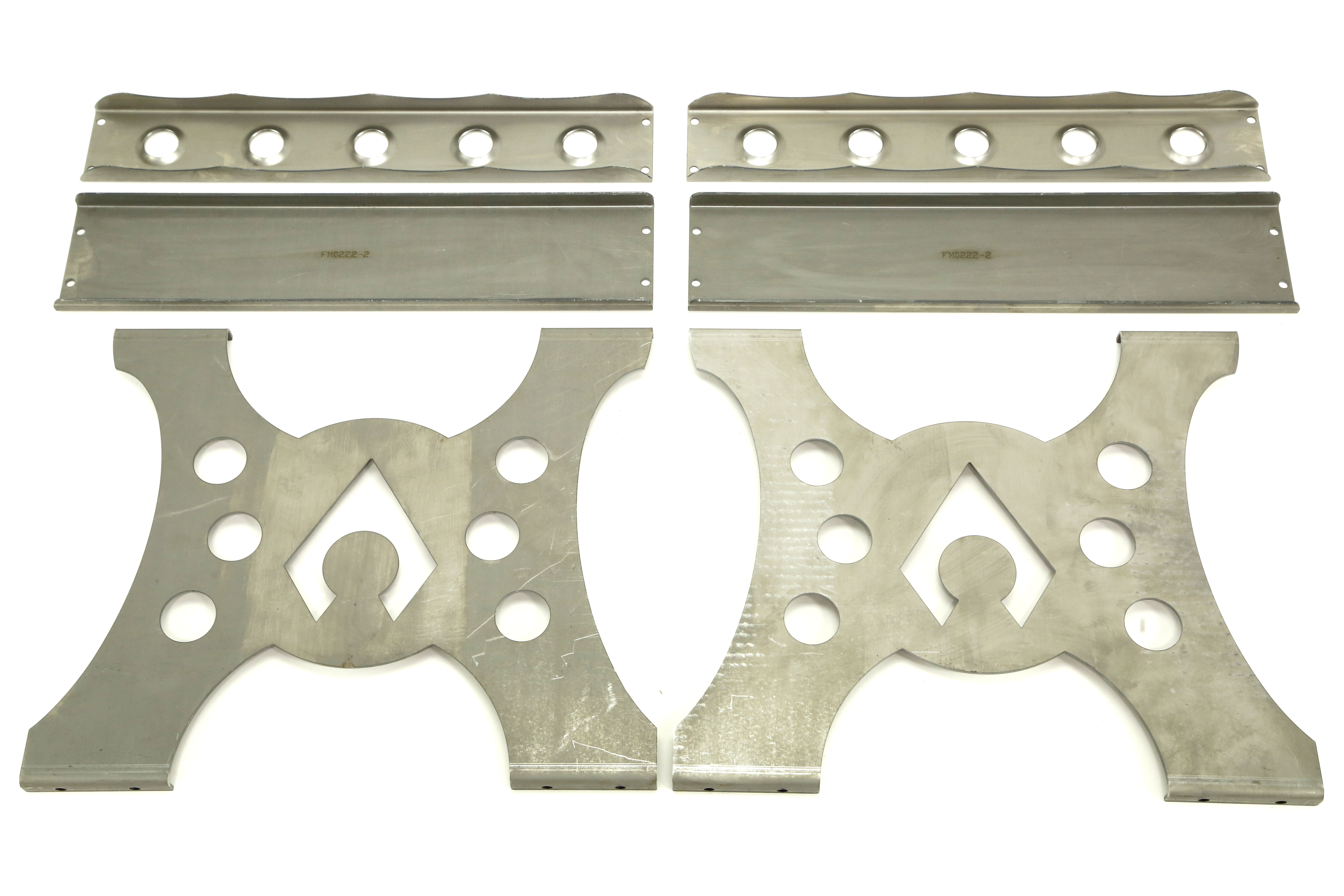 Features IncludeWith CNC-cut steel that's 16-gauge, bent and dimple died, there are 2 10-gauge brackets (side version), as well as 2 10-gauge base supports for increased strength. To give room for the tube chassis, the supports have a inchCinch shape to them to allow for notching. For drivers who don't are looking for mounting with a flat surface, the bases are optional and don't have to be used. Total there are 6-pieces in this package (Model #622). The package ships as bare steel and will require paint, a powder coated finish or plating to help minimize rust damage over time.