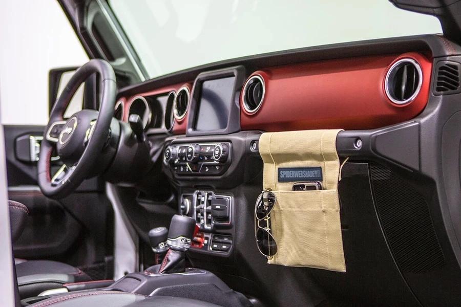 Meet the GrabBag! The GrabBag is a must have for any Jeeper looking for easy-to-access storage in the Jeep. This GrabBag fits Jeep Wrangler model JL. The GrabBag has a large pocket big enough to hold any of today's oversized smartphones and even smaller tablets. It also has a smaller pouch perfect for pens or sunglasses. Every Jeep can use more storage and now with the GrabBag you have got a new stylish way to carry more when in the Jeep or detach and take it with you on your travels!
