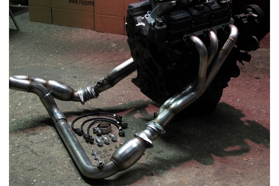 Made from 16-gauge T304 stainless, the RIPP headers are direct bolt-in systems that are manufactured to provide outstanding performance and a great fit. All systems come with standard with 3/8" flanges, merge-style race collectors and severe duty metallic substrate cats. Our handcrafted manifolds are designed to extract exhaust gas out of each cylinder by increasing velocity. For your convenience we've also added all the plug-and-play Oxygen sensor extensions, and O2 bungs for relocating factory O2's. As an added feature the factory heat shields bolt back in place, so you don't melt plastics in the engine bay like the competitors.