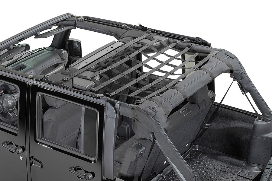 This is a cargo net that covers the rear seat area of the JK Unlimited. It can be used as a stand-alone or added to our rear netting set. Built to the highest standard. Re-enforced stitching. Black anodized grommets. No tools required for installation.