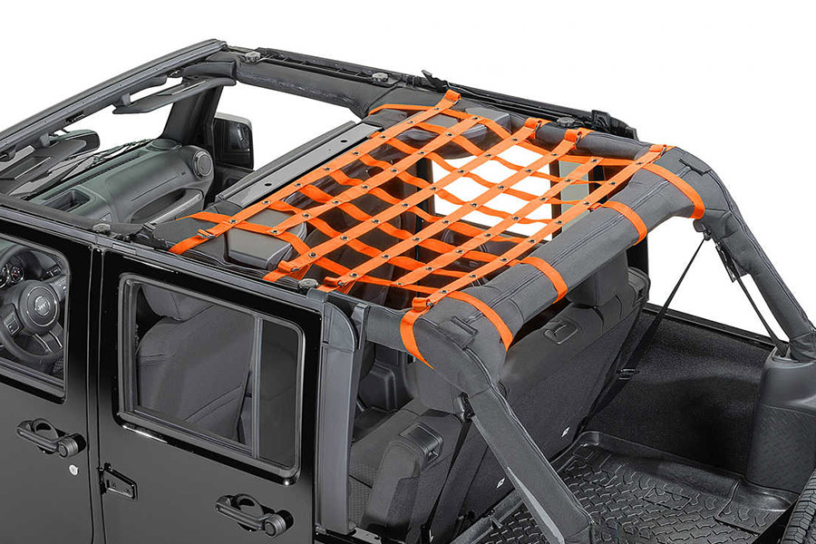 This is a cargo net that covers the rear seat area of the JK Unlimited. It can be used as a stand-alone or added to our rear netting set). Built to the highest standard. Re-enforced stitching. Black anodized grommets. No tools required for installation.