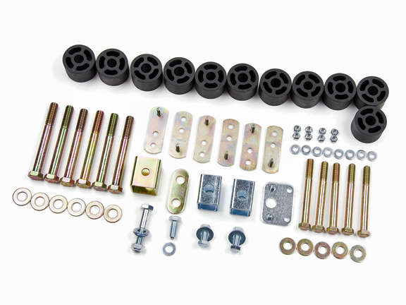 The Zone body lift offers an economical solution to tire clearance problems, without affecting center of gravity, spring rate or steering geometry. This system offers 1-1/4" of additional tire clearance so you can eliminate that annoying rubbing noise. Unlike many systems on the market, the Zone body lift includes radiator drop brackets so you don't need to modify your fan shroud. A steering shaft relocation is also included to eliminate any chance of choppy steering grade 8 body bolts are used. Zone body lifts are designed to easily exceed the demands of four wheeling.