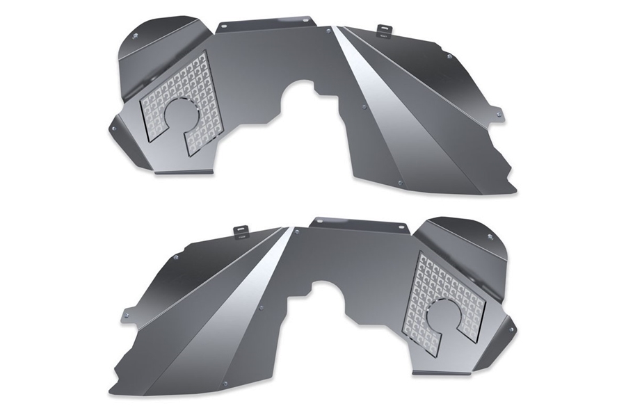 Artec Industries is excited to announce our new JK Front Inner Fenders. These aluminum fenders not only protect your engine compartment from dirt and debris but do it in style. Our proprietary process of stamping our logo not only adds an additional element of style not seen in the industry but also increases the rigidity of the whole inner fender. In addition, the laser cut vents keep your engine compartment cool and don't require you to bolt on an extra piece of mesh material. All this at a PHENOMENAL PRICE and manufactured in-house which means it’s MADE IN THE USA!