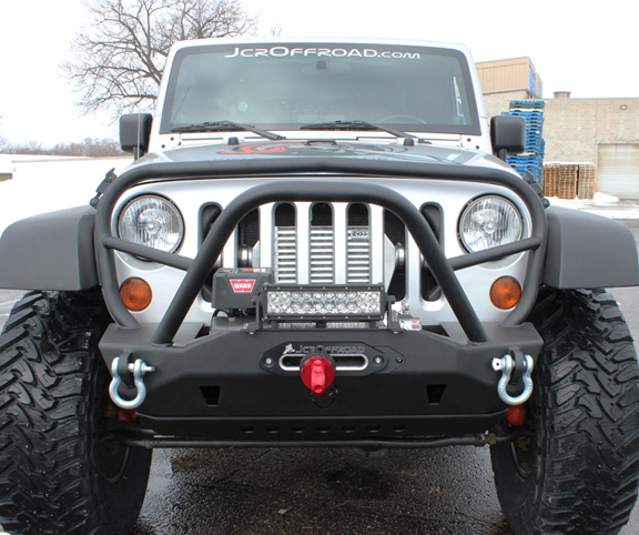Are you tired of all the bulky JK Wrangler bumpers on the market that kill your approach angle, weigh too much and make your JK look like the front of a freight train? Here’s your chance to break the bondage of bad design and high prices with the new JcrOffroad Deluxe Mauler! The bumper is constructed from 3/16” plate that is CNC cut and CNC formed in house, here in the US of A! The Deluxe Mauler is for those looking for maximum clearance, uninhibited approach angle and a streamlined look. These bumpers are factory replacements and have an easy bolt on application (including ‘12+ models). Our bumper comes standard with a winch mount, two ¾” thick D-ring tabs, forward leaning hoop with two additional light/flag mounting provisions on top. Each bumper is designed for maximum approach angle and overall clearance to help you conquer any trail you may happen upon. These bumpers are created by professional fabricators therefore the welds, overall fit, and attention to detail are second to none. Because of this, we stand behind our product with a lifetime guarantee; you break it, we will replace it! Our goal is to provide first class service for a first class product and that is what you receive when you shop with JcrOffroad.