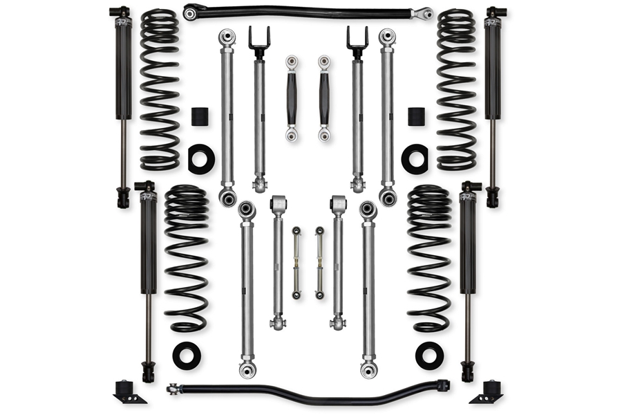 The Rock Krawler Suspension JLU 2.5 inch X-Factor PRO 392 "No-Limits" Mid-Arm System is specifically designed for the WRANGLER 392 owners who want a complete system, bolt-in installation, and the best articulation of any MID-ARM kit on the market. ALL 8 CONTROL ARMS ARE MADE FROM SOLID 7075 ALUMINUM, AND COME STANDARD WITH ALL BENEFITS OF X-FACTOR BUILT RIGHT IN. Our system proves its durability and off-road performance every time you hit the streets or trail! The Term, "No-Limits" comes from the inclusion of our front sway bar links specifically designed for use with the factory electronic sway bar disconnect feature found standard in your Rubicon Wrangler! The sway bar links themselves come with factory sized hardware, a CNC machined billet aluminum center section, and Made in USA heim joints from FK bearing, once installed, just press the button and hit the rocks! Our industry leading, X-Factor Series, adjustable upper and lower control arms offer a total of 95 degrees of misalignment when paired with our Pro-X Krawler Joints and Adventure Series joints. The inherent bind in a factory JL control arm is greatly reduced.