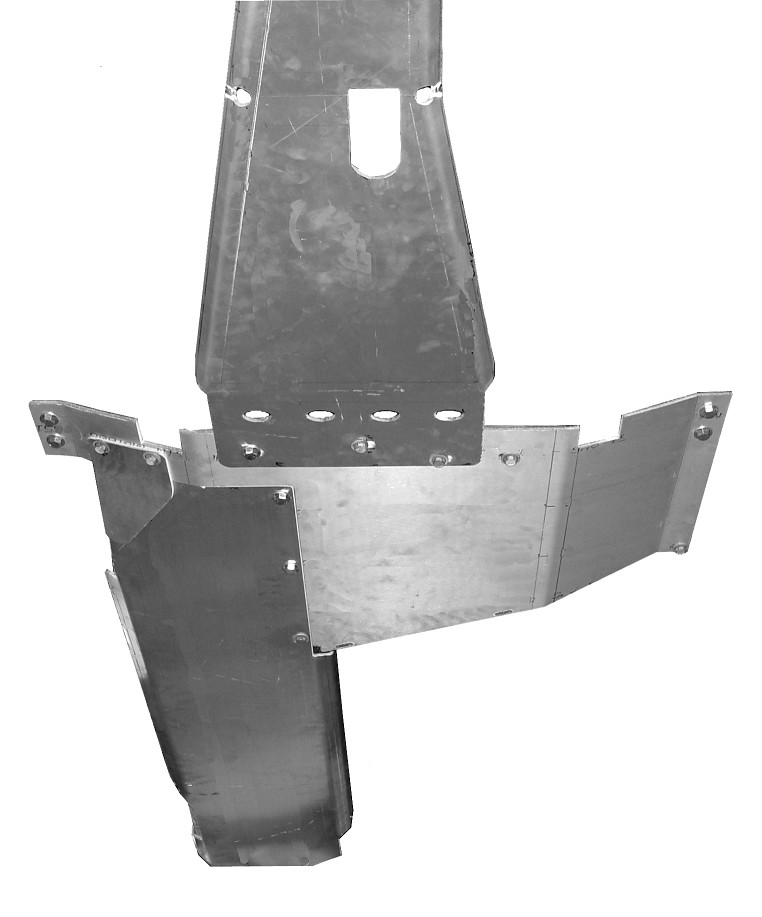 TNT has you covered! Our Transfer Case Skid plate is the foundation of our Modular bellypan skid plate protection. Built from 1/4" 6061-T6 aluminum cut and formed to perfection for an easy bolt-on installation using existing mounting holes in the transmission crossmember and frame. This main bellypan skid plate is more than just a good looking piece, it gives a smooth surface that slides over obsticals effortlessly. The leading edge has a cutout in it to accept the Modular Bellypan Engine Skid for a smooth transition between pieces. At the rear of the belly pan there is a lip, with three mounting studs for the Modular Bellypan Gas Tank skid plate. Internal ribbing is jig welded and has a cutout to clear stock drivelines at full droop of the suspension. Vent holes are added in just the right place to allow heat to radiate off the factory exhaust system. Minor drilling and tapping required for installation.
