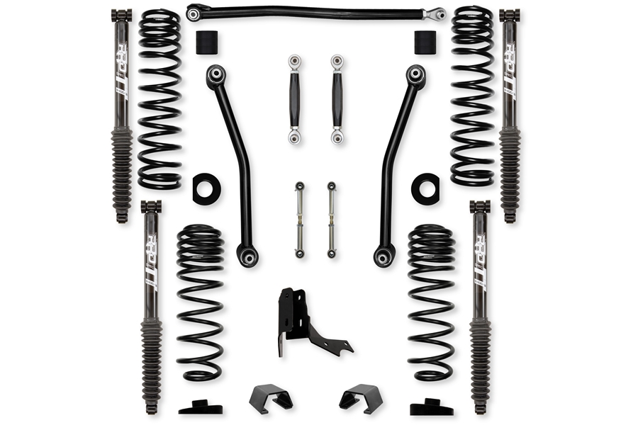 The Rock Krawler JT 3.0 Adventure Series "No Limits" Mid Arm System was designed for those who want an easy bolt-in installation, excellent on-road ride and the durability and the off-road performance you expect from Rock Krawler Suspension. The "No Limits" front sway bar links allow Rubicon owners to use the factory sway bar disconnect function and still achieve maximum articulation. This kit features Rock Krawler’s proven, service free control arm joints.